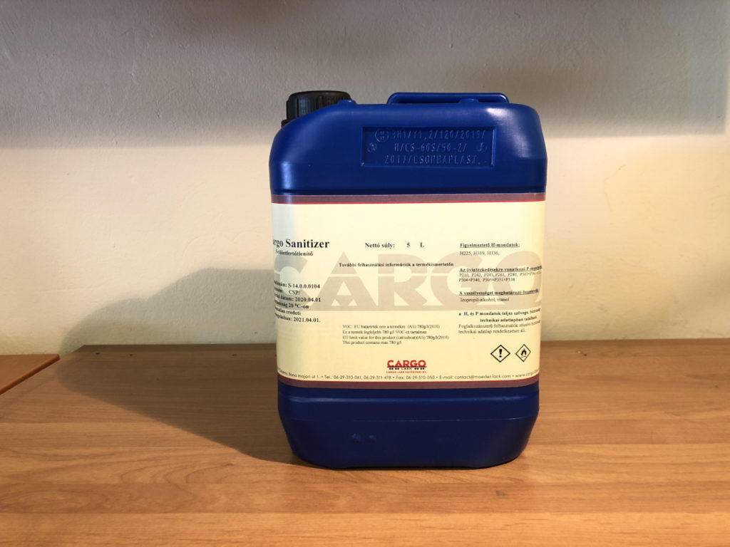 Cargo Sanitizer nagyhatású alkoholos felületi fertőtlenítő, felmosó készítmény. Nem igényel hígítást, vagy öblítést. Közvetlenül használható kül,-és beltéri felületeken. Gyorsan hatékonyan fertőtlenít.